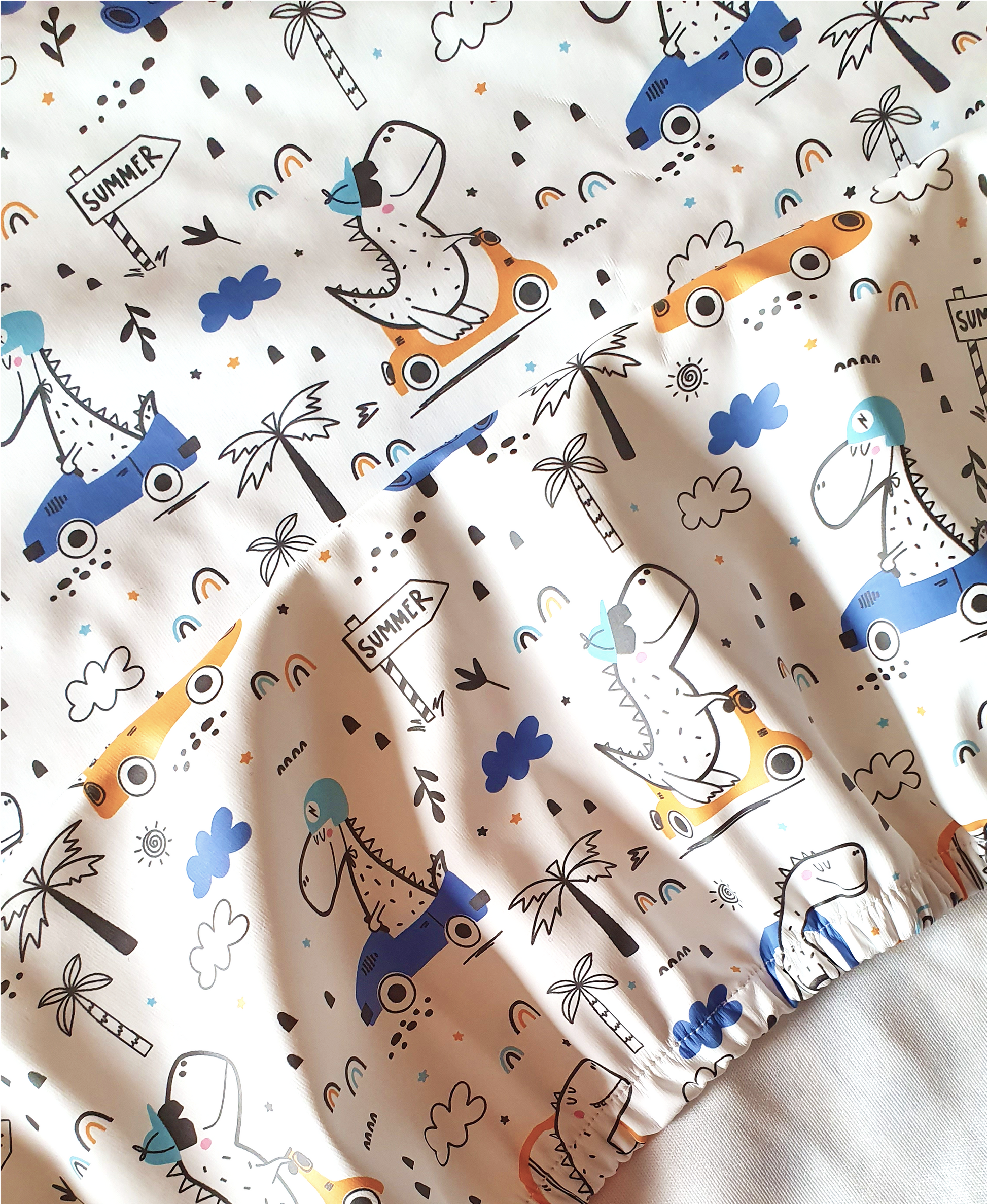 Meet the coolest crew in the nursery – Dino Cruise is packed with funky dinosaurs riding scooters, driving cars, and cruising through change time in style. With bold colours and playful energy, this print is perfect for little adventurers (and parents who love a bit of fun).
